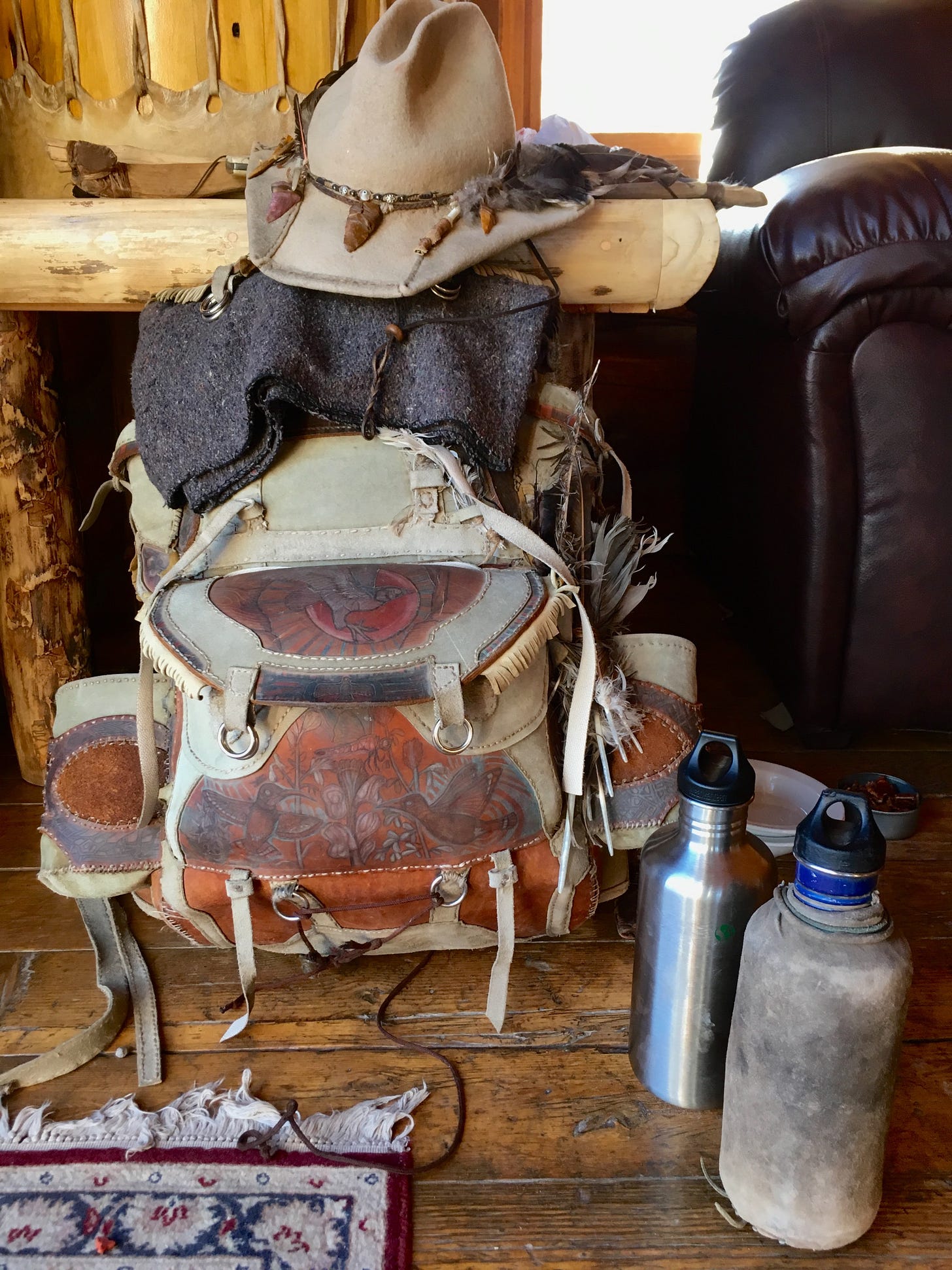 My wife chose a painting. Our 3-year old went for her soft octopus toy (obviously). I called my backpack. I’ve always been fascinated by this accessory but rarely have I been convinced by any specific design. Exception made for this one-of-a-kind leather treasure which a wandering man dropped in front of me, on floor of ranch in the middle of nowhere, Utah. It’s too bad I didn’t take a picture of him but believe you me when I say the man it belonged to matched his apparel. When I asked him where he lived, he just replied “outside”. Zoom in to find out just how much craft was put into it. The leather was thick and heavy.
